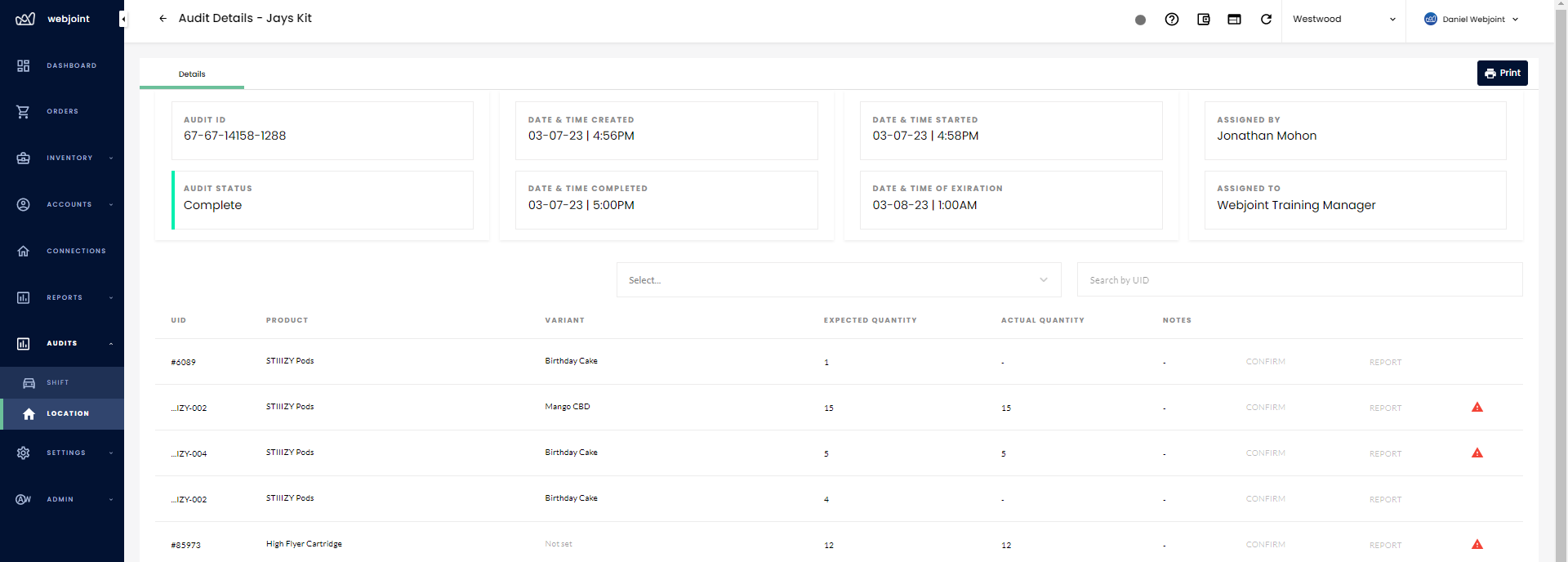 With WebJoint, you can set up inventory audits and delegate them to individual employees with due dates built in. Audits can be designated for specific inventory kits, the complete inventory, certain rooms, or certain product categories. When an audit is finished, the results are sent to managers for review, guaranteeing that the business is in accordance with local laws. This function helps delivery companies save time and energy while still keeping detailed records of their inventory and meeting all applicable standards.