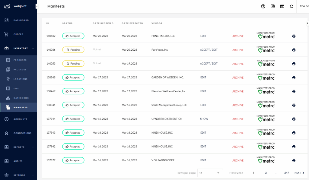 WebJoint's METRC integration is a valuable feature for businesses operating in the cannabis industry. The integration is live-synced, which means that businesses only need to focus on their operations while WebJoint takes care of the compliance aspect. The integration pulls manifests from METRC in real-time, ensuring that inventory is accurately tracked and reported to state regulators. With this integration, businesses can easily manage their inventory and track all cannabis-related activities in one central location. The process is user-friendly and easy to manage, saving businesses time and reducing the risk of compliance errors.