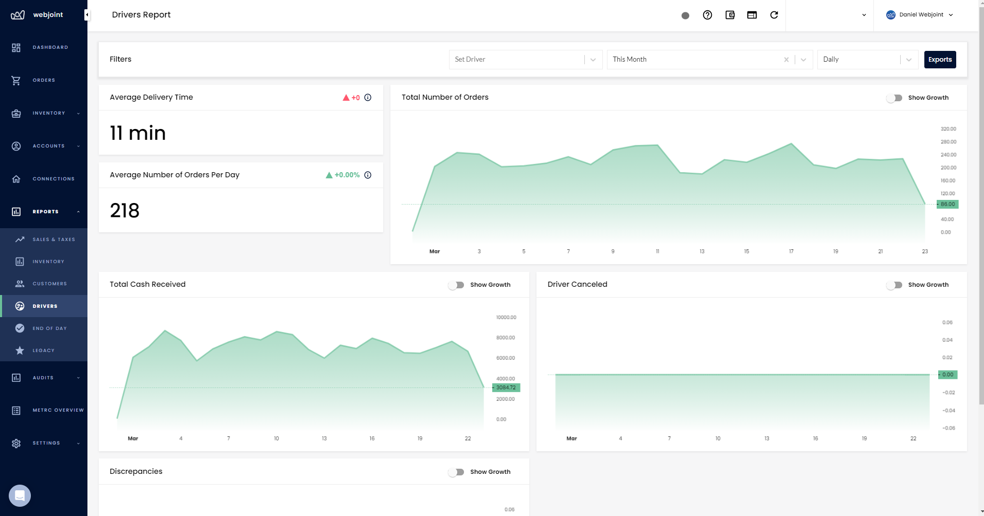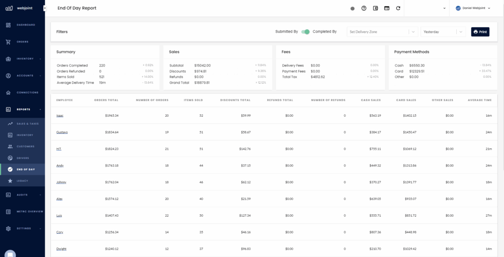 Lastly, WebJoint's End of Day report provides a basic breakdown of a business's sales and inventory for the day. This information is helpful for businesses to close out their operations for the day and ensure all sales and inventory are accounted for.